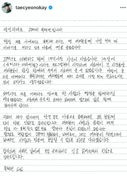 옥택연은 지난해 11월